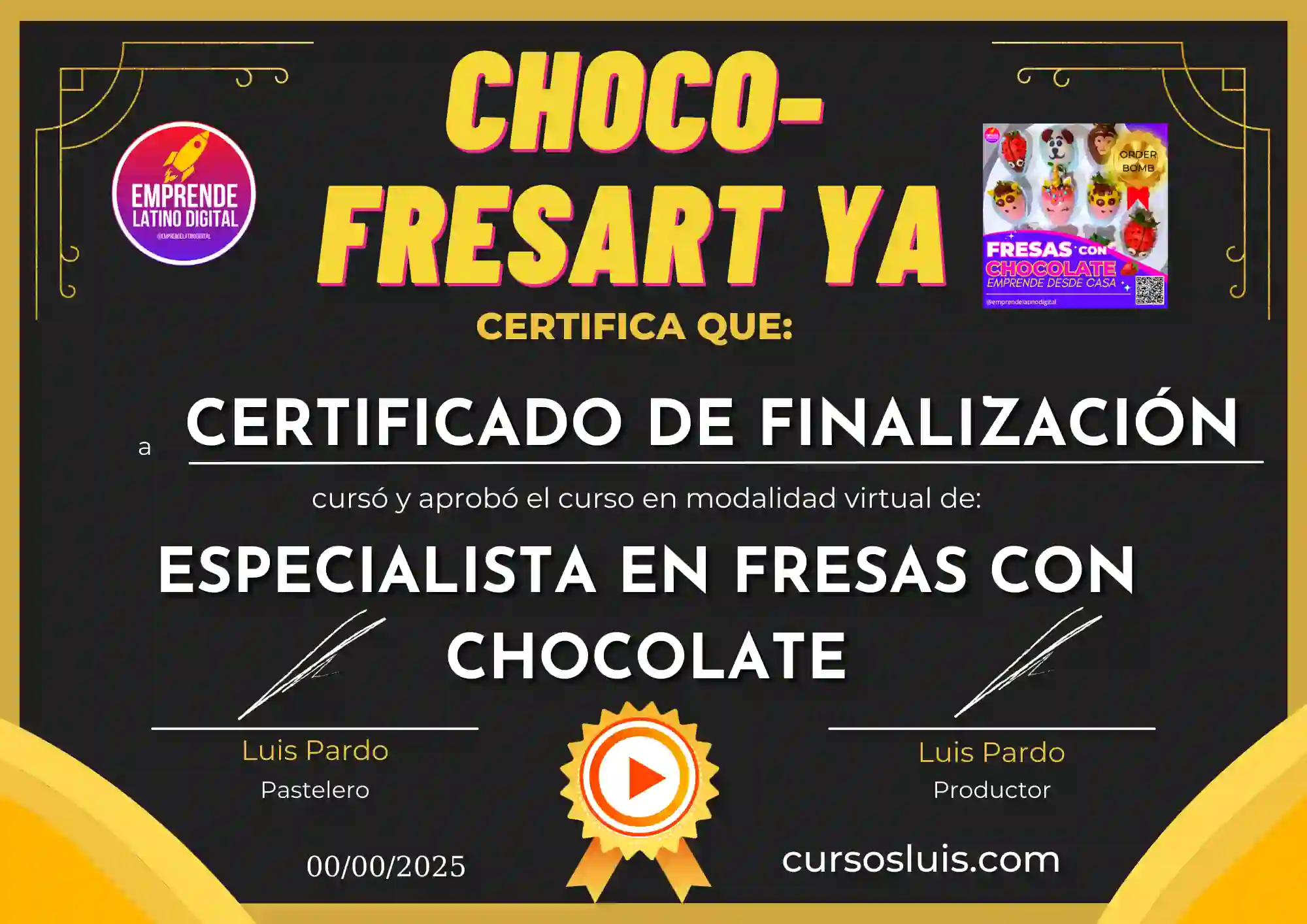 «Recibe un Certificado que Avala tus Conocimientos y Respalda Tu Dominio en la Creación de Choco-Fresas Profesionales.»
